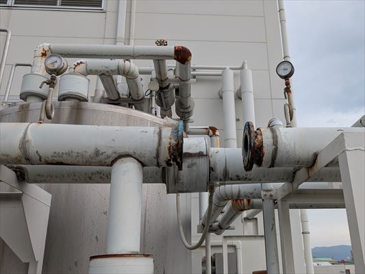 ベローズ伸縮継手・電動弁他取替 Before After 工事内容 ベローズ伸縮継手(蒸気)・二方弁(蒸気)・減圧弁(給水)取替 エリア 福岡市東区 場所 CR工場 「蒸気漏れ・弁開閉不良」のトラブルによる取替。取替はもちろんですが保温から板金まで実施。